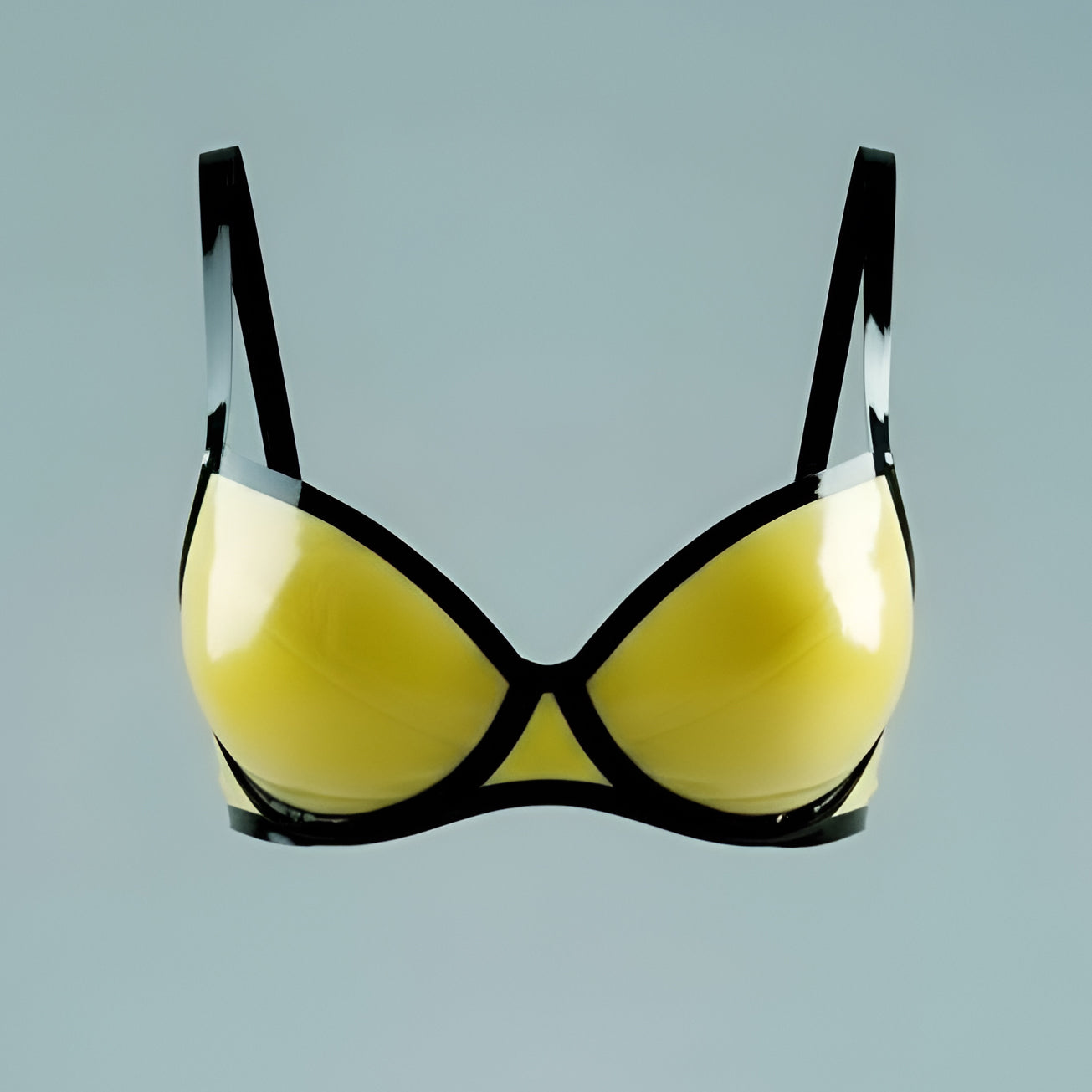 All edges, including the underwire and straps, are finished with a contrasting trim, creating a defined, graphic look.