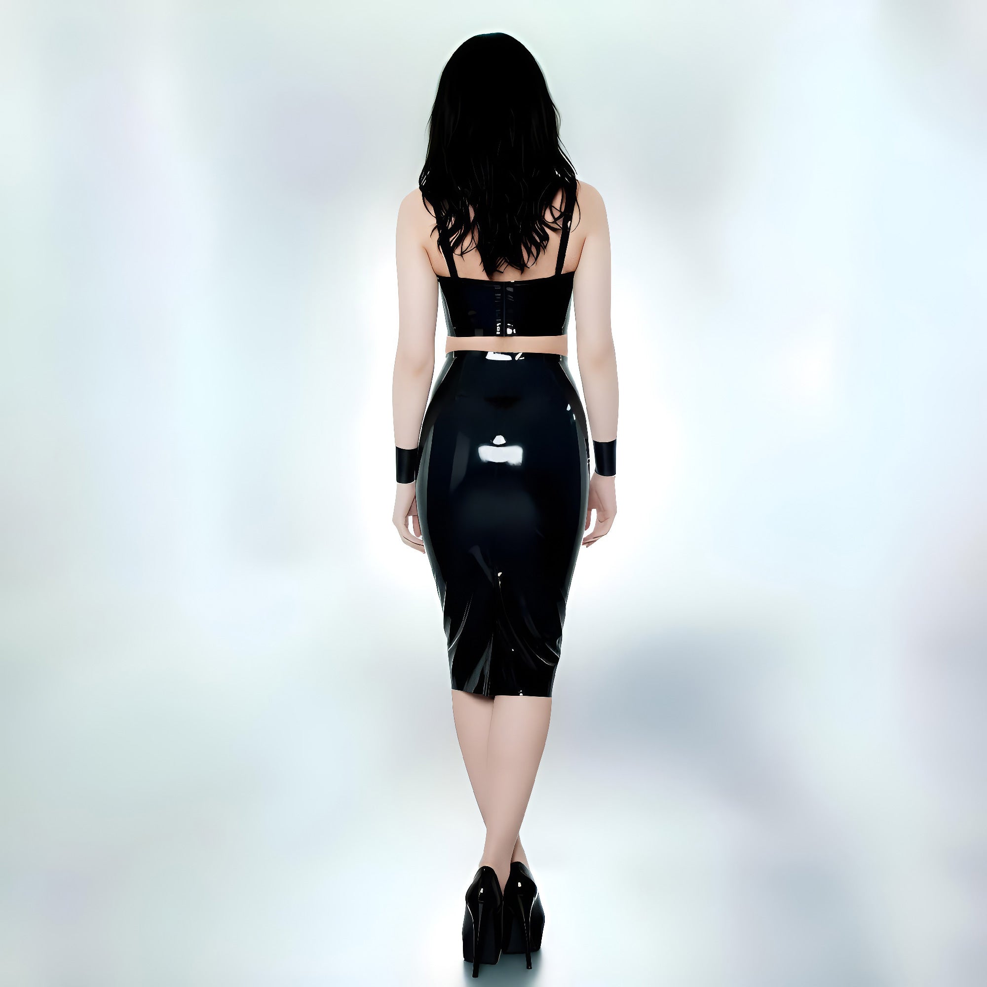 The back of the skirt is solid black for a sleek, uninterrupted silhouette.