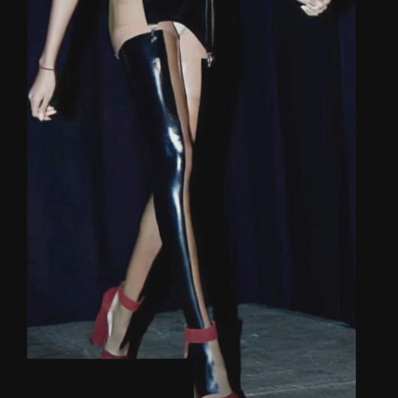 Contrast coloured stockings with open toes and heels, made of 0.35mm